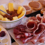 Variedad de quesos nacionales e importados, acompañados de embutidos curados como jamón, salami y chorizo.