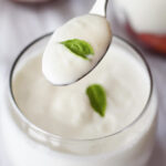 Yogurt artesanal con frutas rojas o moradas y granola, servido en vasos decorativos.