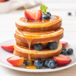 Tortitas redondas y esponjosas hechas de una masa a base de harina, huevos y leche, cocinadas a la plancha.