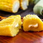 Tamales dulces y suaves hechos con masa de elote y trozos de queso fresco, típicamente servidos con crema o salsa.