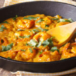 Camarones sazonados y cocinados con especias tropicales, de inspiración costera.