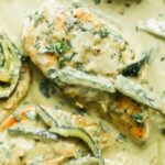 Pollo cocinado con una rica salsa de chile poblano, crema y queso, dándole un sabor ahumado y cremoso.