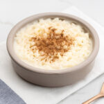 Clásico postre mexicano preparado con arroz, leche, canela y azúcar, servido frío o tibio.