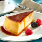 Postre cremoso hecho con queso crema y caramelo, de textura suave y sabor delicado.