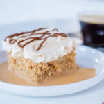 Pastel esponjoso bañado en tres tipos de leche y cubierto con manjar (dulce de leche).