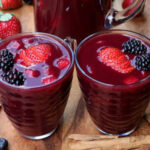 Bebida tradicional morada hecha con frutas, maíz morado y especias, servida en honor al Día de los Difuntos.