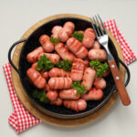 Mini salchichas cocidas o asadas, clásicas del desayuno.