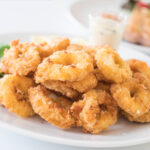 Calamares tiernos en una salsa italiana suave y aromática.