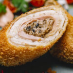 Pechuga de pollo rellena de jamón y queso, empanizada y dorada hasta quedar crujiente por fuera y jugosa por dentro, servida caliente y llena de sabor.