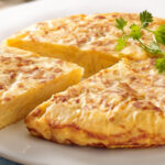 Huevos acompañados de vegetales, jamón y queso.